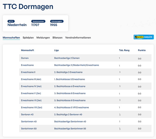 Jahreshauptversammlung des TTC Dormagen